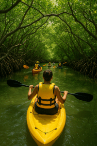 As sunlight filters through the canopy and dances on crystal waters, experience a peaceful yet thrilling journey — a perfect blend of exploration and calm in nature’s embrace.