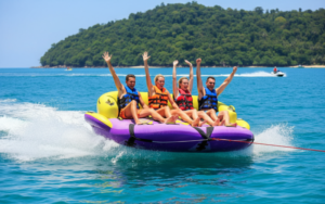 Experience the Sofa Ride at Elephant Beach, gliding and bouncing over Havelock’s blue waters. This relaxed yet exciting adventure offers the perfect mix of comfort and fun on the waves.